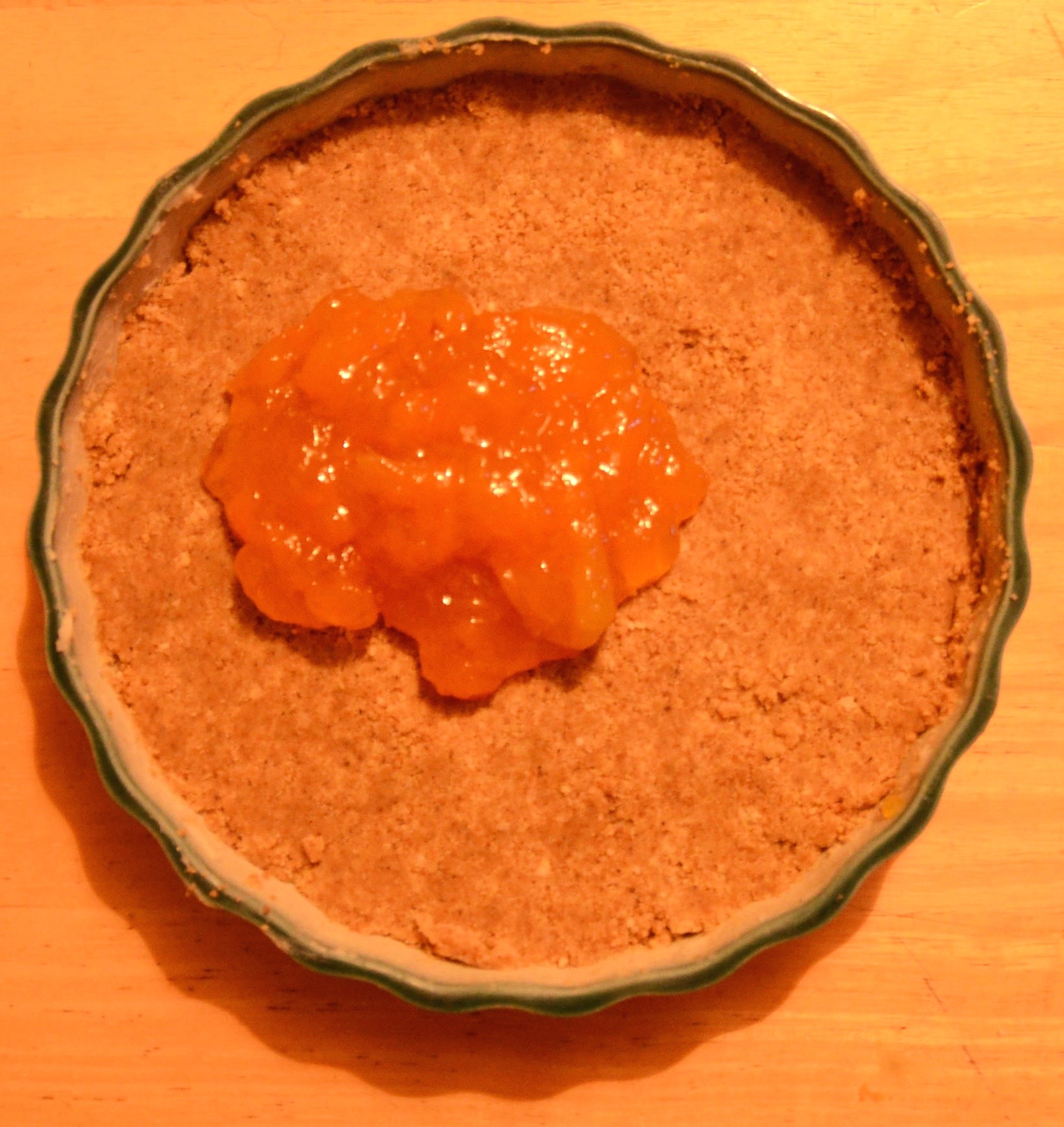 Next get the crumble you had set aside. Sprinkle the crumble over the top making sure no jam is visible!