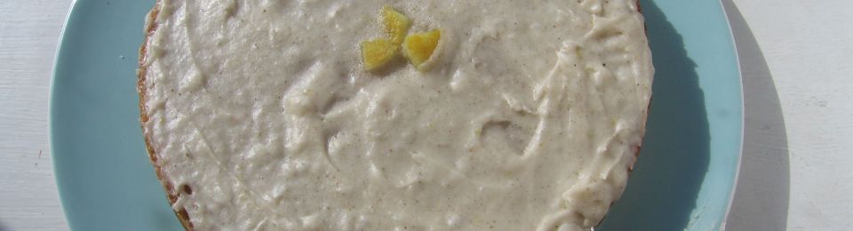 Mash the coconut oil, sieve in the icing sugar and vanilla, mush mash and press so the fat is taken up by the sugar. Add your lemon juice and zest and give it another good mix. If it is still not forming a smooth spreadable mix you can add a dessertspoon of warm water. Make sure your cake is completely cooled before putting your icing on. I put a few little bits of lemon skin on a decoration.