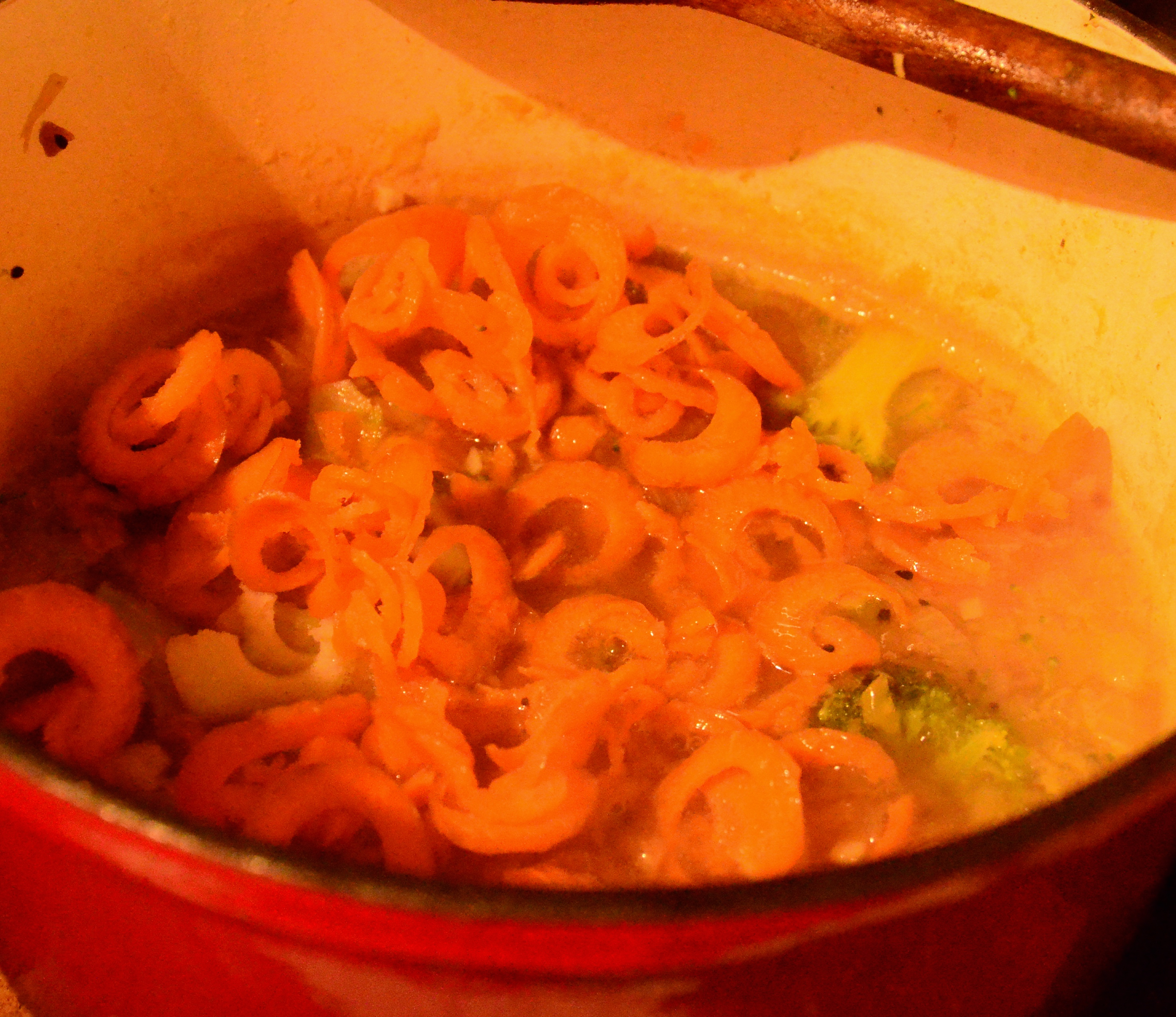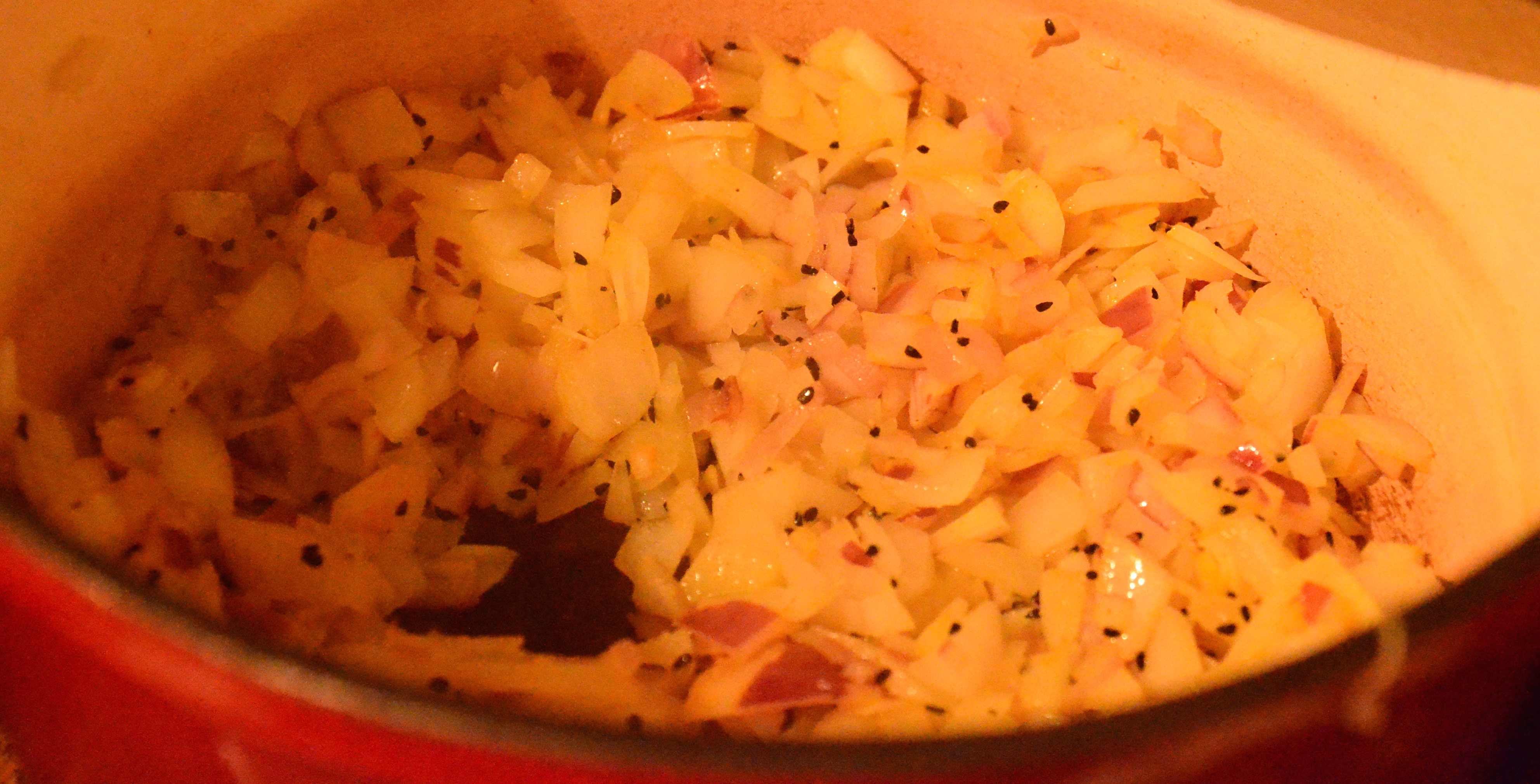 Meanwhile put another saucepan on a medium high heat and start toasting your walnuts with the salt. They are done when they change colour a little, they inside become a little more yellow. Be careful not to overdo them, hence the tasting!