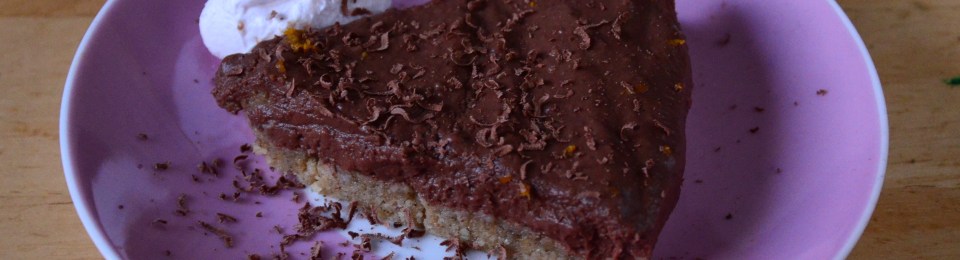 Quickly, before it begins to thicken, pour the mousse on top of the base. Using a spatula spread it evenly. Do not be heavy handed, you want to keep the air in it. Grate a little extract orange zest on top. Cover it up again, try not to have it touch the pie filling or it will mark it, you could make a foil tent if you like. Leave it to set in the fridge or freezer. A minimum of three or four hours. It is even better if you can leave it overnight.