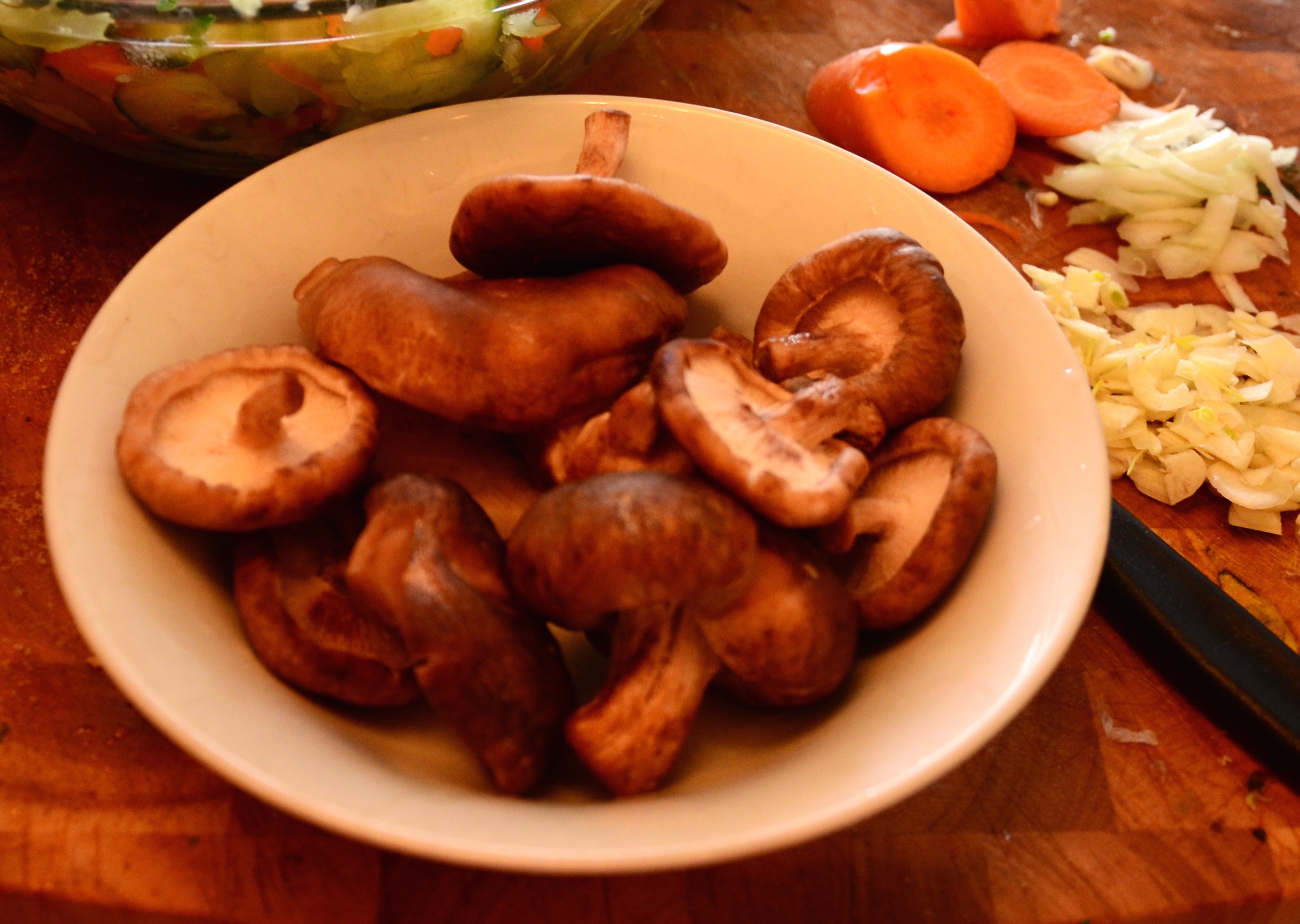 The “Wasabi Poppy Seed Dressing” is made extra yummy by some cooked shiitake. It almost tastes mustard like with the hot wasabi and brown rice vinegar. It was lovely with the aduki chicory salad that night. But first…..