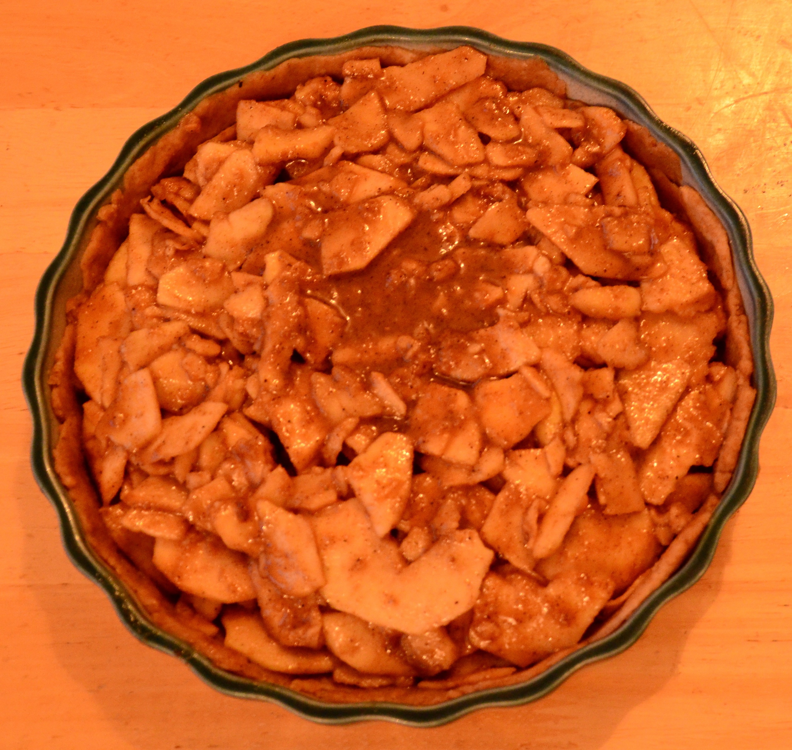 Press the crust into the pie tin as evenly as you can. It will make a thin crust. Cover and pop in the fridge while you make the topping.