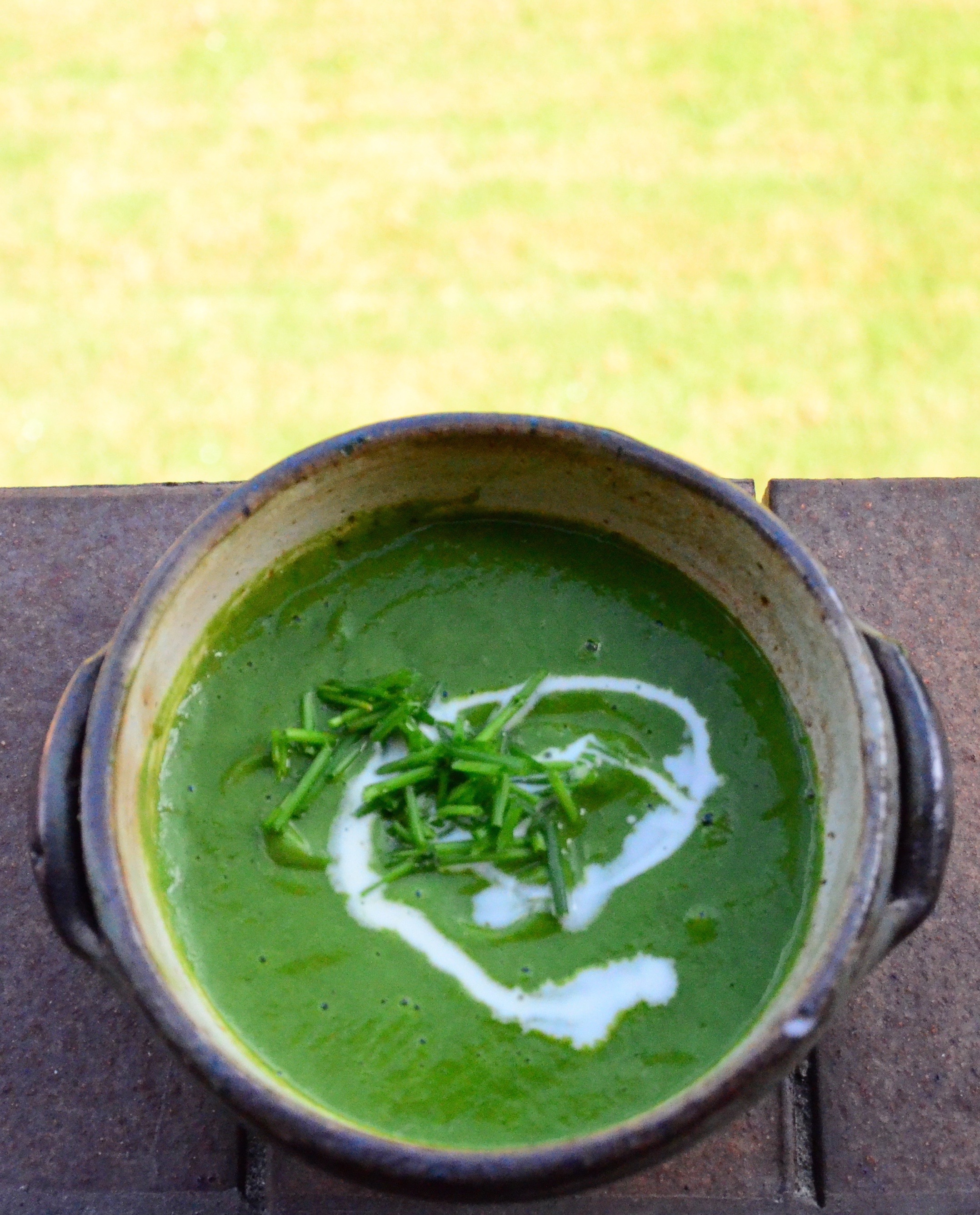 Mostly nettle soup would be made with a base of potato, I am not a fan of the starchy spud and I already have enough tomatoes in my diet to cover my nightshade consumption quota! I used a base of organic cauliflower and carrots, my extra seasonal goodies I have young spinach, rainbow chard, chives and wet garlic! If you cannot get your hands on nettles try some rocket, Persian cress or mustard greens!